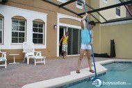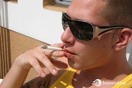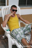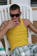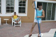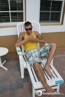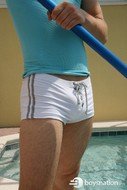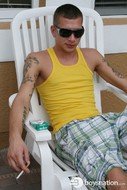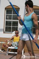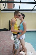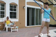 Jake's an awesomely cute pool boy hired to clean the swimming pool at the condo where the guys are staying. Eric comes outside for a smoke, makes eye contact with Jake and you know what's going to happen next. Damon's away, so Eric takes Jake up to the bedroom and fucks his tight little ass.