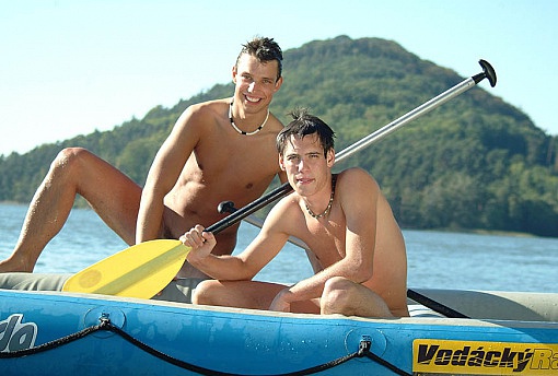 Dominik and Johny decided to spent a day at the lake. The weather is good so they decided to make a boat trip and has fun splashing each other. After enjoying the fun and the sun, they decide to go rest on the bank. Inevitably they get closer and start kissing and end up with a hot sex party.